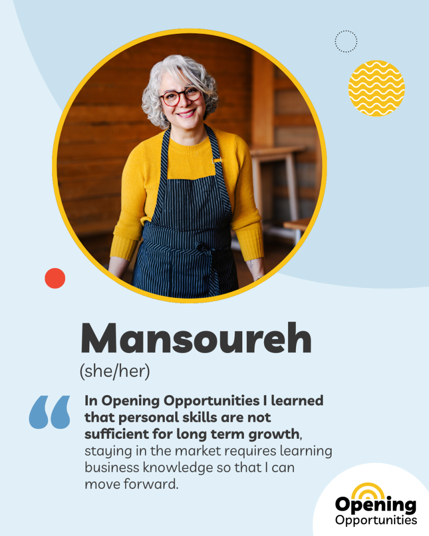 We have a growing roster of experienced mentors who can help you take your business idea to the next level! Participants are eligible for mentorship once they have completed 4 learning activities through Opening Opportunities.